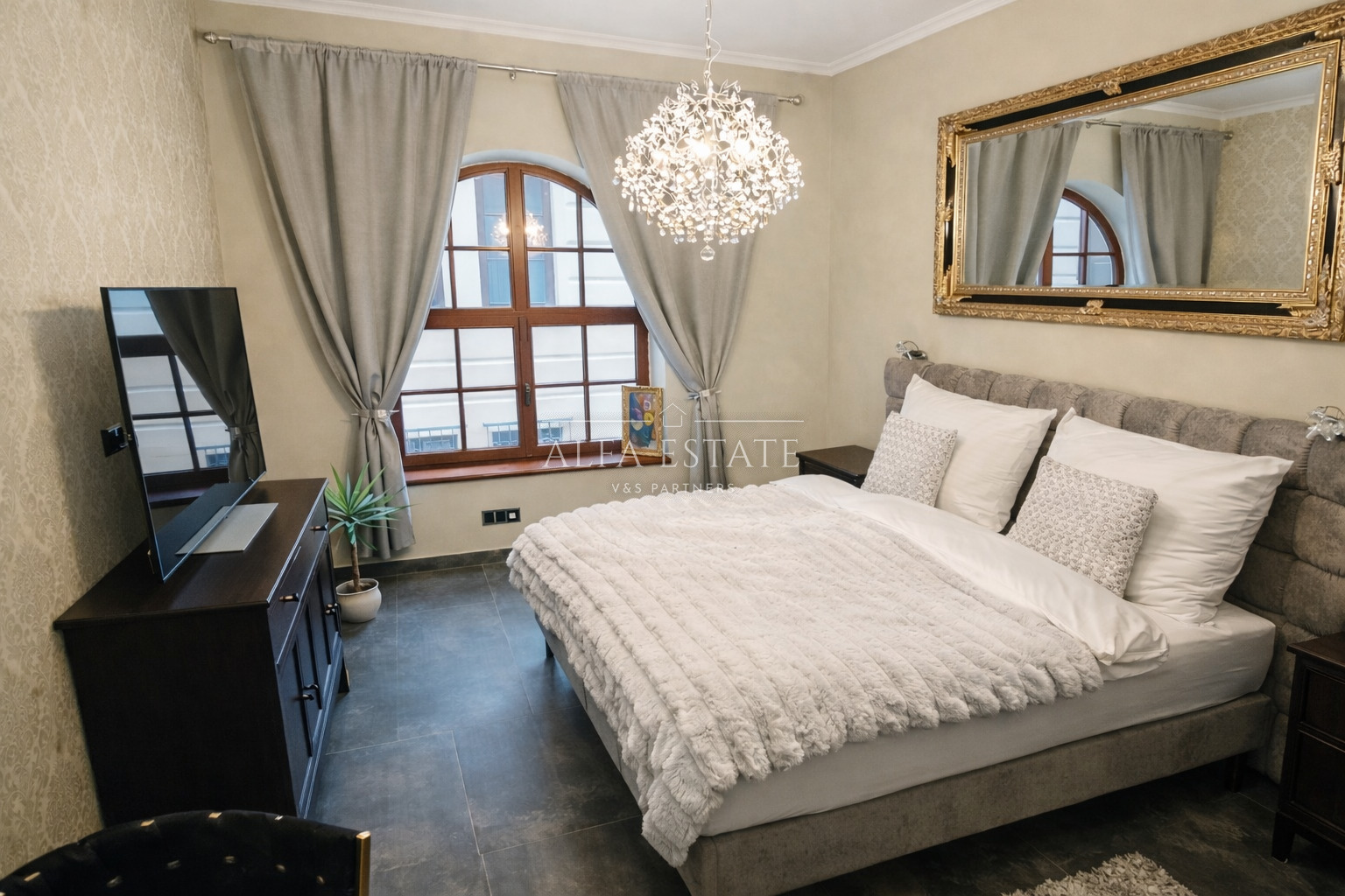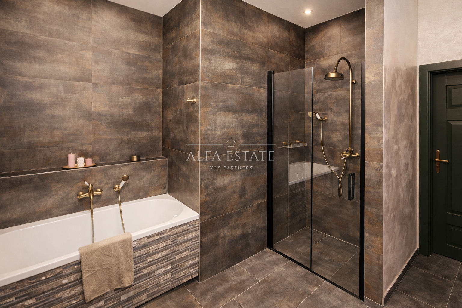 Premium Residence for Rent – Luxury Apartment 1 Bedroom (2+kk), 80 m² – Mariánská Street, Karlovy Vary. We are delighted to present an exclusive, fully furnished luxury apartment (1 bedroom / 2+kk) with a total area of 80 m², situated in a private detached villa in the prestigious Mariánská Street, one of the most desirable addresses in Karlovy Vary’s historic spa district. The property enjoys a truly exceptional location just behind the famous Grandhotel Pupp, while only a few steps away from the peaceful Karlovy Vary spa forests, offering a rare combination of absolute tranquility, privacy, and immediate access to the city center.The apartment has been thoughtfully designed to meet the expectations of demanding international clients, executives, and professionals seeking premium accommodation in Karlovy Vary.Upon entering the apartment, you are welcomed by a spacious entrance hall leading to a luxurious bathroom finished with high-end materials and elegant design elements. The bathroom features both a bathtub for relaxation and a separate walk-in shower, while the toilet is located separately, ensuring maximum comfort and privacy. The main living area forms a generous open-plan space combining a modern kitchen and a comfortable living room. The custom-made designer kitchen is fully equipped with premium Gorenje appliances, offering both functionality and style.The living area provides an inviting atmosphere ideal for relaxing or entertaining. The living space flows naturally into a stylishly furnished and spacious bedroom, featuring a high-quality bed designed for maximum comfort and rest. The entire villa has undergone a meticulous and high-standard renovation, where particular attention was paid to quality craftsmanship, elegant details, and superior materials. The apartment is offered fully furnished, with all interior equipment included in the rental price.Technical features include: electric underfloor heating throughout the apartment, with individual thermostats in each room high-speed internet connection available in the property hot water supplied by a modern boiler systém Residents also benefit from a dedicated technical and storage area, equipped with a washing machine and dryer, with additional space suitable for sports equipment, bicycles, or personal storage. An additional benefit is the option to rent a private parking space located directly above the house, providing convenient access.