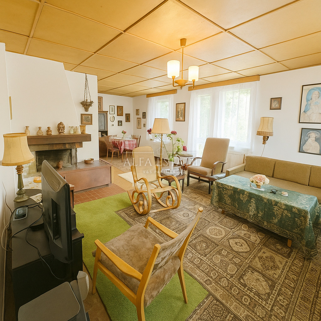 Nabízíme k prodeji samostatně stojící rodinný dům s podsklepením, jedním nadzemním podlažím a obytným podkrovím. Objekt je postaven ze zdiva z plynosilikátových tvárnic, založený na základových pásech. Jedná se o podsklepený dům – využití suterénu pro technické zázemí a skladovací prostory a jedno nadzemní podlaží + obytné podkroví. Konstrukce domu je zděná, sedlová střecha se střešní krytinou z plechových šablon, fasáda- stříkaný břízolit, kabřincový obklad. Stropy: z hurdisek do I profilů, podlahy: PVC a keramické dlaždice. Vnitřní omítky: štukové, částečně dřevěné obklady. Dům sestává ze vstupního prostoru, po pravé straně se nachází velmi prostorný obývací pokoj s balkónem a krbovými kamny, ze kterého vejdeme do kuchyně, sousedící s koupelnou. V obytném podkroví se potom nachází dvě ložnice, k jedné náleží balkon. Vytápění je řešeno elektrokotlem, voda a kanalizace jsou napojeny do veřejného řádu. Jedná se o klasický rodinný dům Nemovitost má solidní konstrukční stav a standardní vybavenost, která umožňuje užívání, i postupnou modernizaci dle představ nového majitele. Výhodu je možnost rozdělení pozemku na druhý stavební pozemek o výměře 800m2 a stavbou rodinného domu 150m2. K tomuto záměru byl vydán souhlas s dělením pozemku, včetně souhlasu na napojení na komunikaci a veřejný vodovod a kanalizaci. Součástí prodeje nemovitosti je také pozemek o výměře 385m2-ostaní plocha, který se nachází nedaleko. Obec Hostín u Vojkovic leží ve Středočeském kraji, v okrese Mělník, přibližně 25 km od Prahy. Díky poloze v úrodné polabské nížině nabízí příjemné a klidné prostředí vhodné pro rodinné bydlení i rekreaci. Hostín je dobře dopravně napojen na okolní města. Autem se do Prahy dostanete během půl hodiny, do Kralup nad Vltavou za cca 10 minut a do Mělníka přibližně za 15 minut. Obcí prochází silnice II/101, která spojuje Neratovice s Kralupy nad Vltavou. Veřejnou dopravu zajišťují pravidelné autobusové linky s návazností na vlaky v Neratovicích a Kralupech nad Vltavou. V obci funguje mateřská a základní škola (1.–5. ročník), pošta a obecní úřad. Pro větší nákupy, zdravotní péči či další služby lze využít blízké Kralupy nad Vltavou, Neratovice nebo Mělník, kde je k dispozici kompletní infrastruktura. Hostín u Vojkovic je tradiční česká vesnice s příjemnou komunitní atmosférou. Obec se stará o společenský život – pořádá kulturní i sportovní akce a podporuje místní spolky. Okolní krajina mezi řekami Labem a Vltavou je ideální pro cyklistiku, procházky i aktivní trávení volného času v přírodě. Hostín u Vojkovic je klidná a dobře dostupná obec nedaleko Prahy s vlastní základní vybaveností a příjemným venkovským prostředím. Díky blízkosti měst Kralupy nad Vltavou, Neratovice a Mělník nabízí ideální kombinaci klidu, přírody a rychlé dostupnosti veškerých služeb. Velmi rádi vám tuto nemovitost představíme při osobní schůzce.