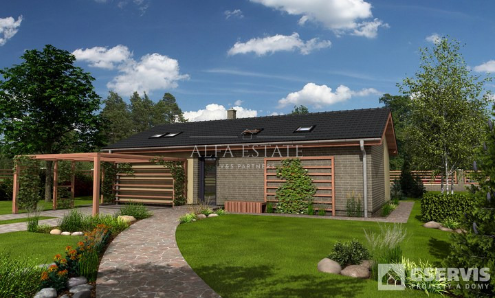 Ve spolupráci s projekční kanceláří GServis jsem pro vás vybrali velmi oblíbený bungalov, jak pro svoji velikost, tak cenu. Dispozice 3+1 Zastavěná plocha 93,6 m² Obestavěný prostor 417,7 m³ Užitná plocha 70,5 m² Užitná plocha přízemí 70,5 m² Výška hřebene střechy 4,66 m Sklon střechy 22° Axor je malý přízemní bungalow, který však plně uspokojí nároky na bydlení 3 členné rodiny. Jeho moderní vzhled dotváří prosklená fasáda, která opticky propojuje zahradu s vnitřními obytnými prostory domu. Propojení obývacího pokoje, jídelny a kuchyně zaručuje společné soužití celé rodiny. Dům je vhodný i pro menší pozemky. K domu lze přistavět garáž na boční straně. Standartní provedení domu: základová deska včetně připojení na inženýrské sítě, zdící materiál Porfix, okna bílá plastová zn. Veka v provedení trojsklo, vazníkový krov, plechová falcová krytina Satjam, bílá fasáda, interiér je vybaven krytinou dle výběru klienta ve středním standartu, stříkané omítky, barva bílá, komín, podlahové vytápění celého domu-topné elektrické kabely. Koupelna vybaveny bílou sanitou a obklady dle projektu. Samozřejmostí jsou klientské změny.