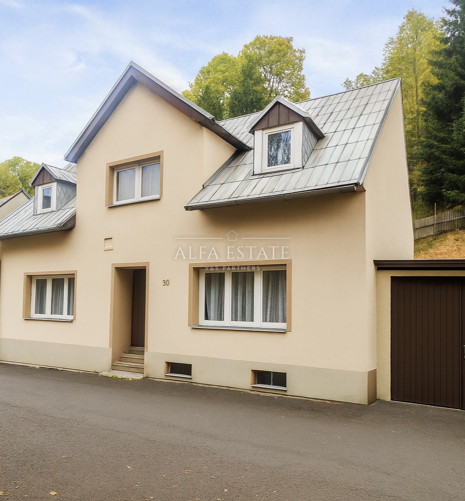 Hledáte bydlení, které spojuje pohodlí moderní rekonstrukce s kouzlem původních prvků? Tento cihlový rodinný dům o dispozici 6+1 vám nabídne oboje. Nachází se v malebné části Jáchymova, na konci slepé ulice, kde si můžete užívat klid, soukromí a krásné výhledy do okolních kopců. Interiér vás přivítá v přízemí prostornou kuchyní, obývacím pokojem, dvěma pokoji a koupelnou. V mezipatře se nachází další koupelna se vstupem na zahradu a komora. V prvním patře nalezneme tři útulné ložnice. Součástí je také půda. Atmosféru domu dotvářejí původní dřevěné dveře a odkryté trámy, které byly s citem zachovány při rekonstrukci. Dům je kompletně podsklepený, vybaven plastovými okny, napojen na veřejný vodovod a kanalizaci, vytápění zajišťuje nový moderní kotel na peletky. Na svažité, pečlivě udržované zahradě si vychutnáte pohodu a ničím nerušené výhledy. k domu přísluší garáž. Jáchymov není jen lázeňské město s unikátní radonovou vodou, ale i brána do Krušných hor. V blízkosti se nachází Klínovec a další ski areály, kilometry turistických tras i cyklostezek. Do Karlových Varů se dostanete za pouhých 20 minut, stejně jako do Německa. Tento dům je skvělou volbou pro rodinné bydlení, rekreační zázemí i investici do pronájmu. PENB uveden jako G, průkaz není k dipozici.